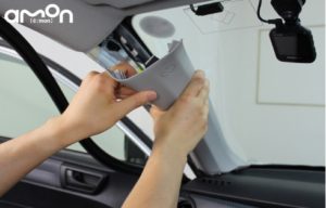 後ろのガラス付近に純正のサンシェード(ボタンを押すと出てくるもの)がついている場合、ドライブレコーダーをつけると干渉してしまい取り付けが出来ないことがあります。