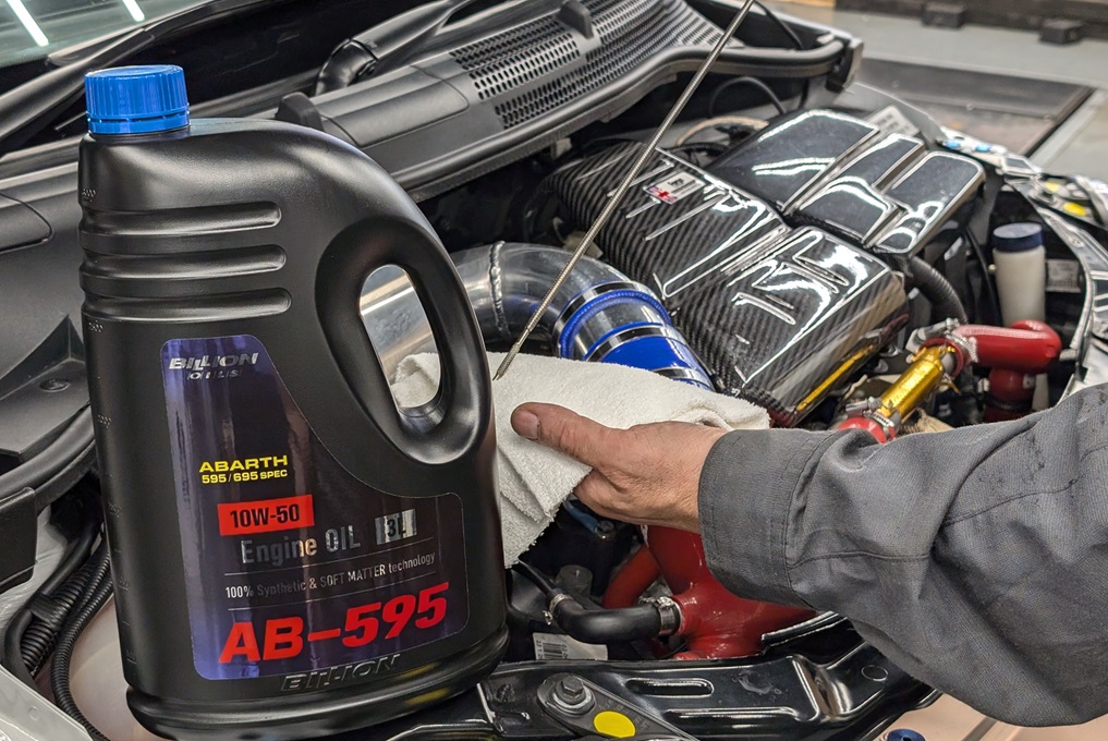 デモカーABARTH595 BILLION専用オイルでオイル...