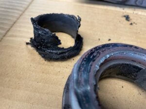 先ず金属音はレリーズベアリングの破損。レリーズスリーブ部のセンターが樹脂製のため溶けて破損状態でした。