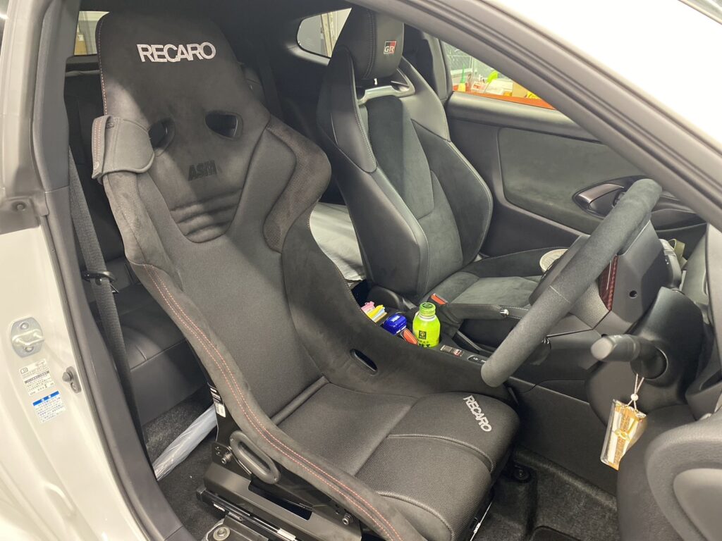 GRヤリスにRECARO RS-Gを取付させていただきました。カタログモデルにはないASM LIMITED Rubyになります。レッドステッチとウルトラスエード生地が特徴の見栄えもクールな限定アイテムです。GRヤリスの場合、通常ですとシートがドア側に寄ってしまうのでオフセットアダプターにて調整を行い、さらに事前のヒアリングにて着座位置があまり下がらないようにとご要望でしたので数ミリ単位でセッティングさせて頂きました。
