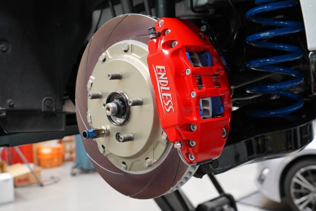 エンドレス 6POTライト&S4Rを取付いただきました。オプションでキャリパーカラーをレッドへ変更とベルハウジングをレーシングアルマイトに変更。