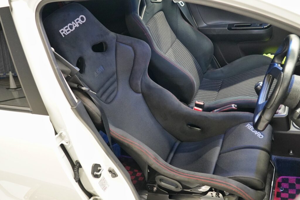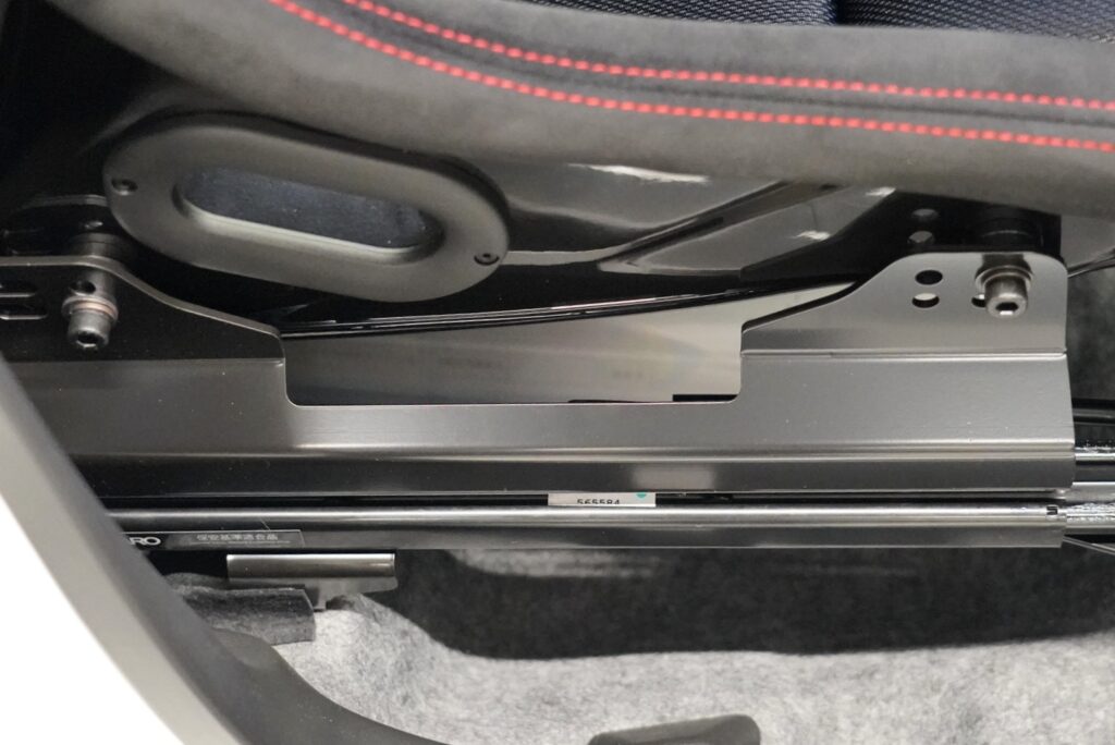 シート幅540mmのRS-Gをオフセット調整してBピラーへの干渉を極力無くすことが可能となります。ワークスは純正RECAROが標準装備となりますが、その中で最もオーナー様より声が上がる着座位置の高さとホールド性。