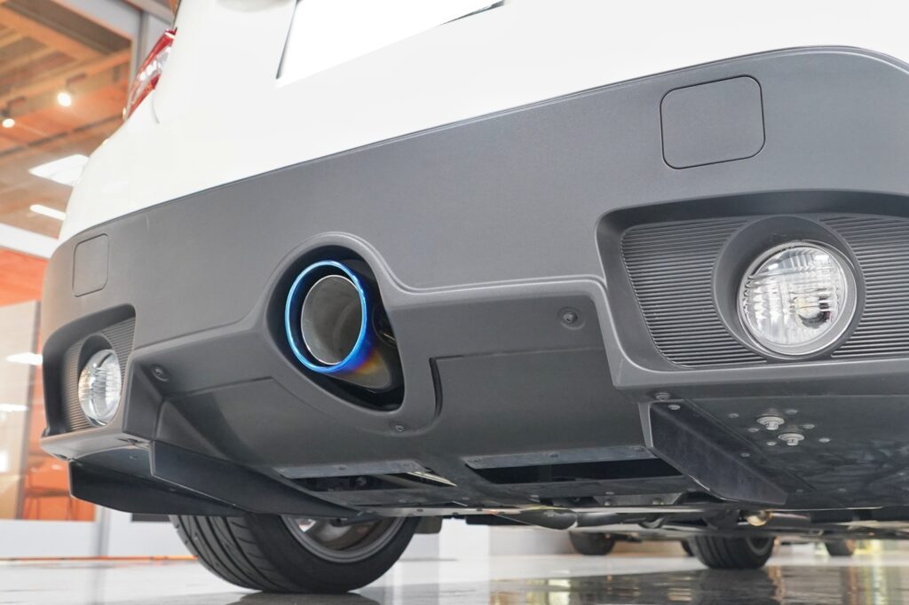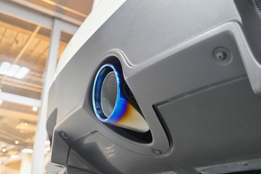 ノーマルでもスポーティーなセンター1本出しマフラーがチタンフェイスでさらに迫力アップ!
