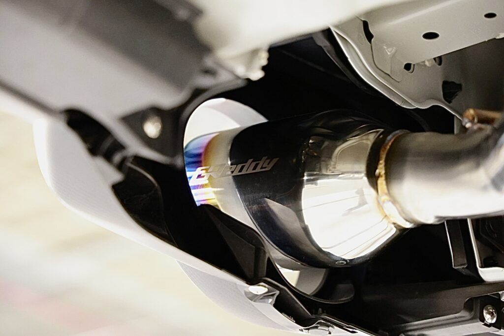 マフラー交換は、ビジュアルやサウンドが変わりさらに排気効率アップによるブーストの立ちあがりが変化することが運転する楽しさを一番感じやすい部分となり、今回装着しているマフラーはパワーエクストリームR