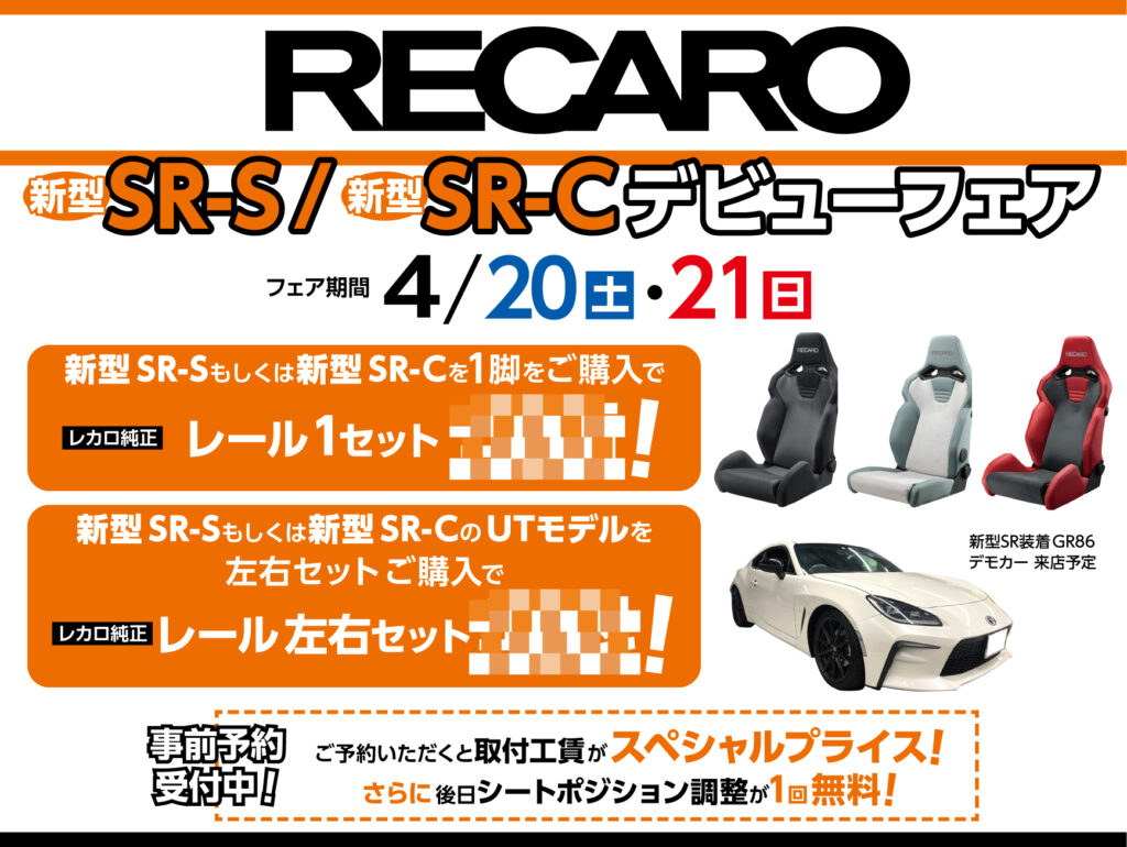 SR-S / SR-C 各試座シートも準備しております。今月下旬に開催される新型SRデビューフェアの事前予約も併せて実施していますので