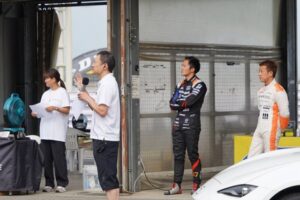 朝のドライバーミィーティングで当店ターナーからトークから走行会が始まりました。