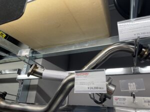 当店3Fにありますスイフトコーナーにただいまトラスト製、フジツボ製のフロントパイプ(オイルパン下)を在庫しております。