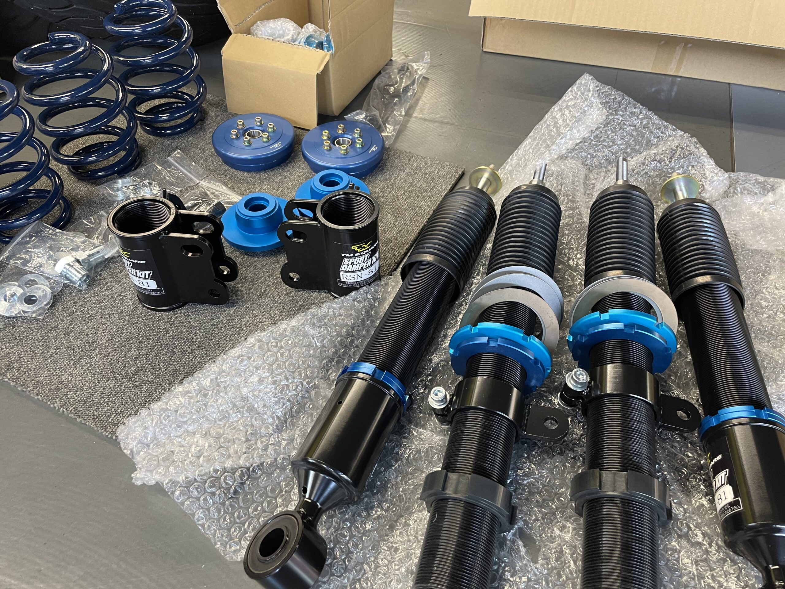 サーキット走行をされていて取り付けていたダンパーキットにヘタリが出てきたのとスプリンレートアップに伴いこのタイミングでTM-SQUAREタイプTDダンパーフルキットの選択となりました。