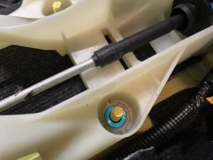 シフト側とミッション側の両方共に純正ゴムブッシュからTM-SQUAREシフトカラーに交換です。