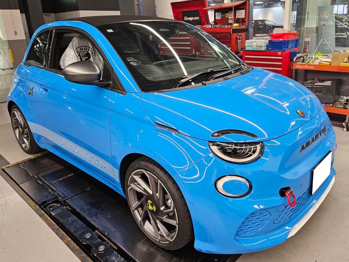 話題のEV ABARTH500eに牽引フックを取り付けました。