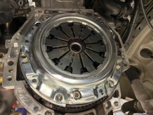 アールズ軽量フライホイールにクラッチカバー&ディスク(クスコ製)も同じに作業を行いました。