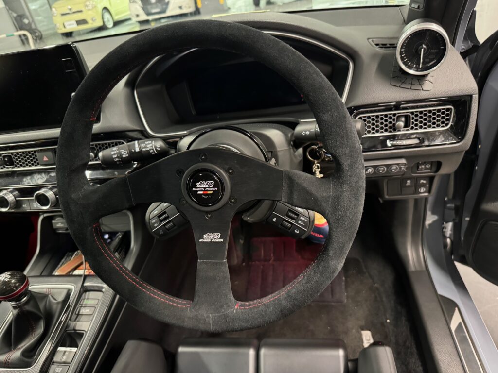 先日、RECAROシートを装着させていただきましたお客様よりドライビングポジションのさらなる追求を兼ねて無限ステアリングにSRDキットを取付さらにDefiブーストメーターを取付させていただきました。