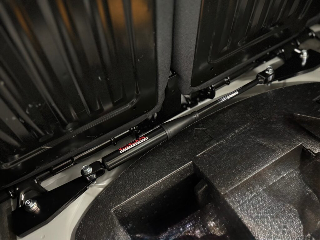 COX ボディダンパーは、各車種の最適なポイントに専用ブラケットを開発、その間に伸縮するダンパーを配してボディの”たわみ”をコントロールすることでボディ剛性をアップさせます。その乗り心地は上質そのもの。特に、ABARTH500/595/695 で感じるリアからの突き上げ感の軽減には、圧倒的な効果があります。