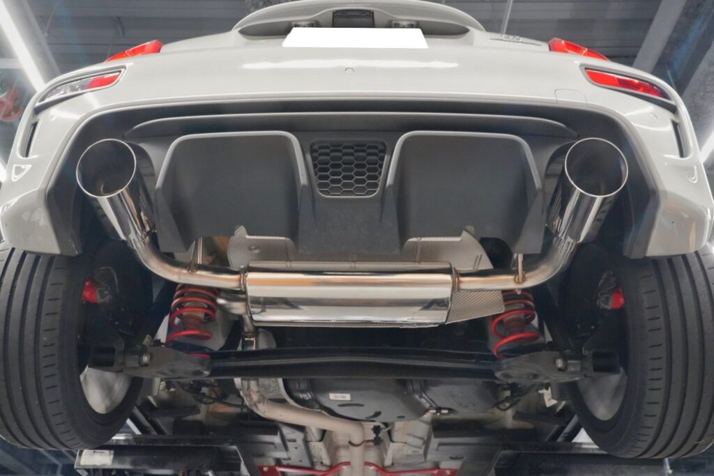 低~中回転でのトルク、中~高回転でのパワーを犠牲にすることなく、ジェントルなサウンドを奏でるリアマフラーです。