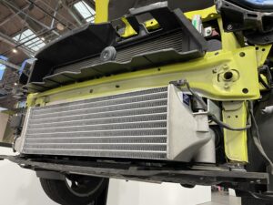 HKSインタークーラーは純正交換タイプですが容量が大きいためバンパーグリルの加工が必要になります。