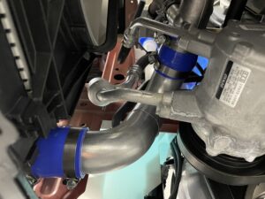 純正の樹脂タンクインタークーラーではなくて劣化による圧漏れのないアルミタンクで溶接されております。