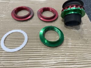 オリジナルリアスプリングは上部65φでモンスターは70φのため画像にあります緑のアジャスター部をテインの65φに変更しての装着になります。(シートも65φに変更)