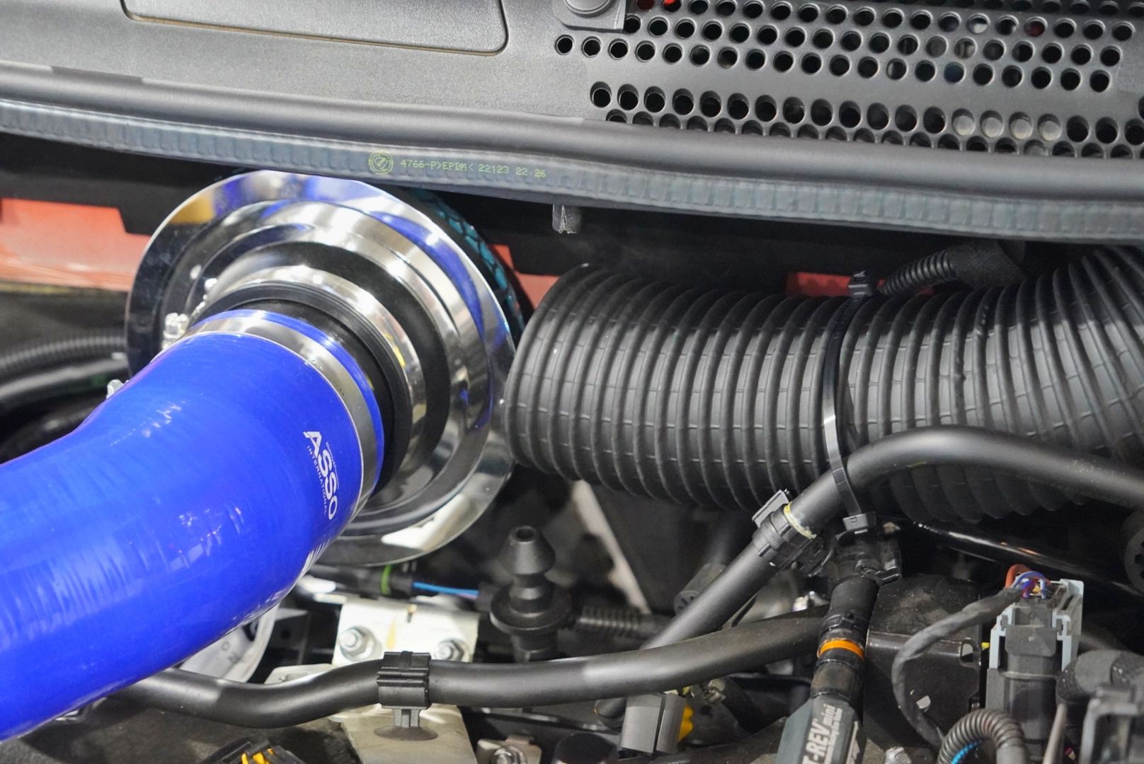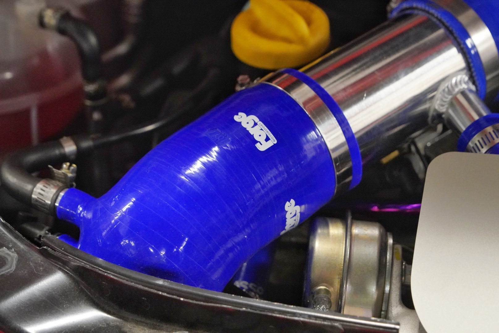 吸気効率とエンジンルームの色合いを揃えるためにブルーのForgeインテークホースもセットします。