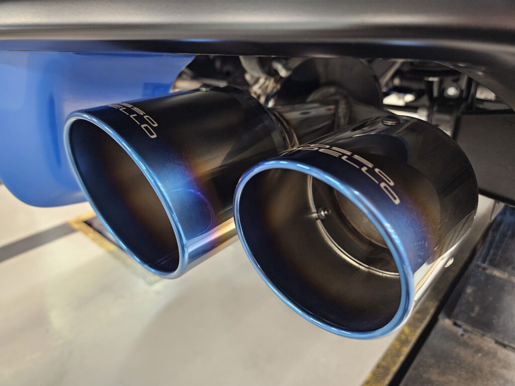 マフラー出口はチタンカラーとなり、内側と外側で出口のサイズ違いの4本出しが