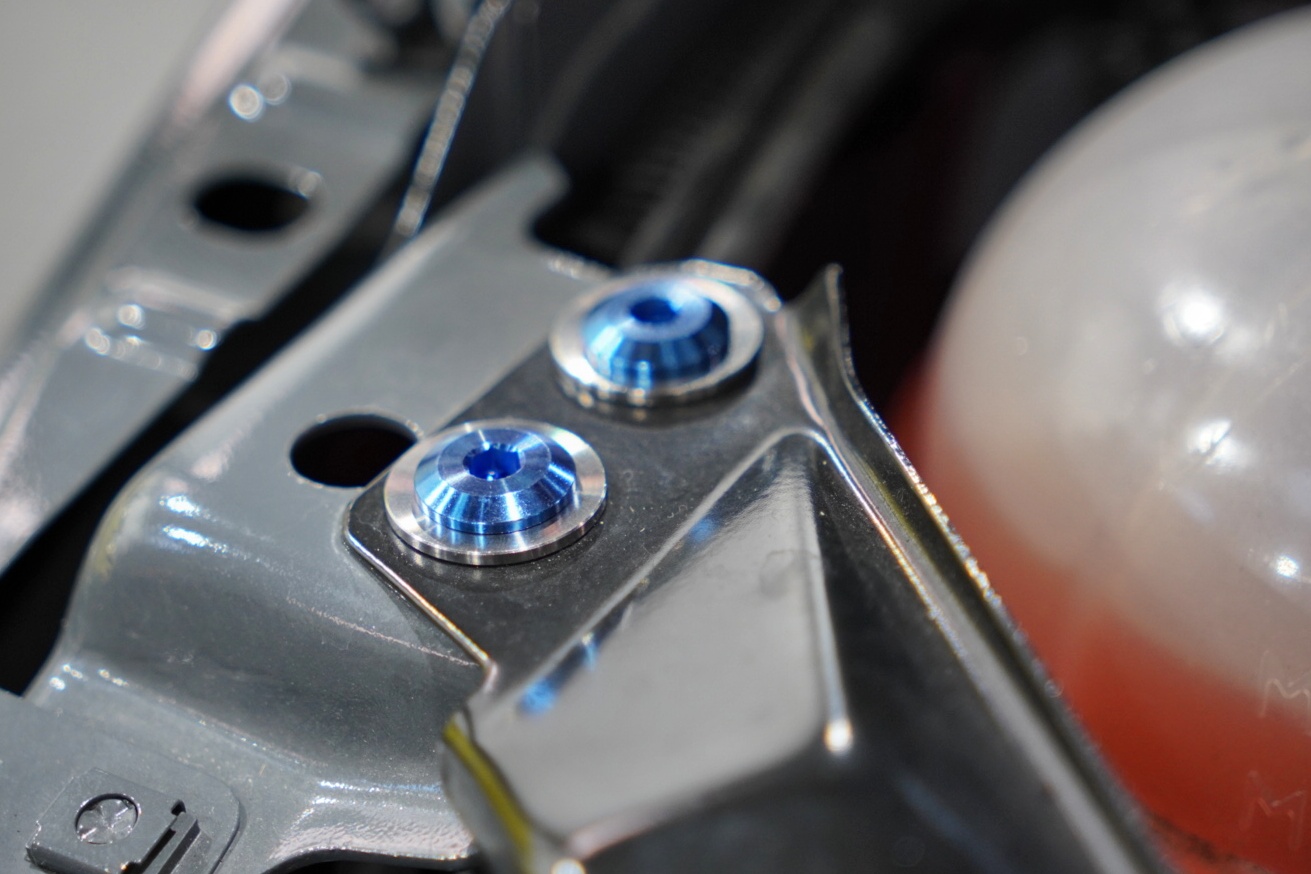 今回はアバルト用に作ったAPITチタンボルトシリーズを使って錆びたり、くすんだりするボルトを交換しました。