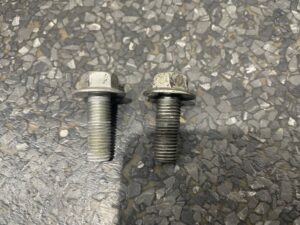 今回は緩んでいませんでしたがボルトをよく見るとステー部のねじ山が少し潰れています。(画像左が運転席、右が助手席)