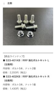 最近それを見越してか!アールズからエンジンマウントボルトセットが販売されました。エンジンマウント交換作業があれば勧めてみようと思います。(アールズ開発ブログの画像です。)
