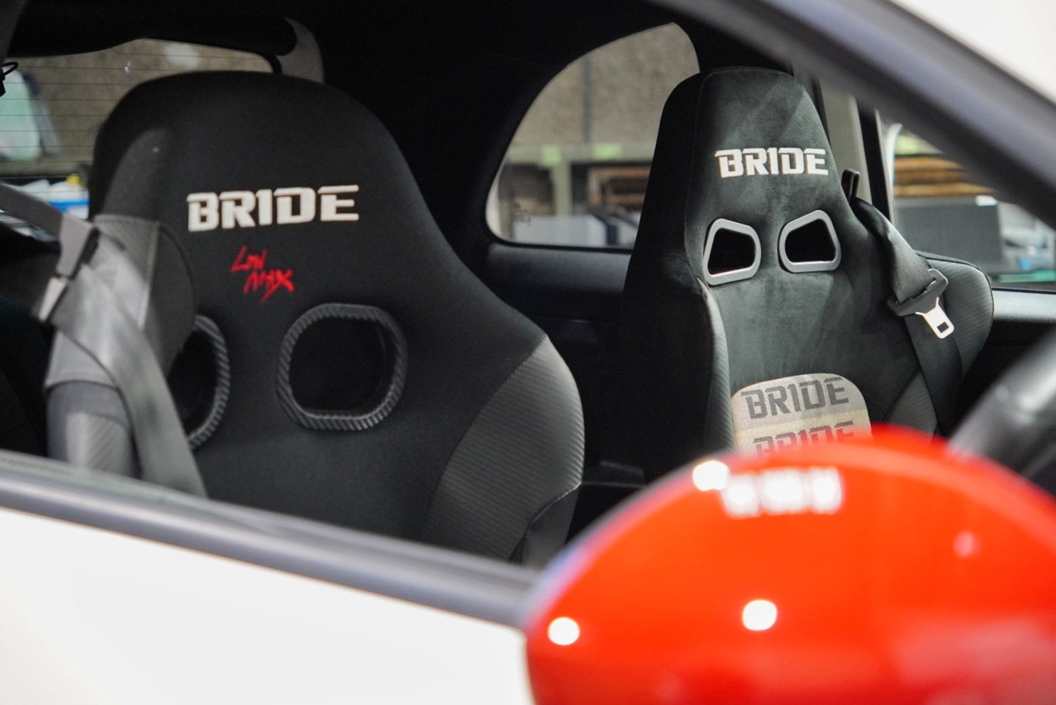 ABARTH595の助手席にBRIDE ERGOSTERグラデーションを取り付けました。