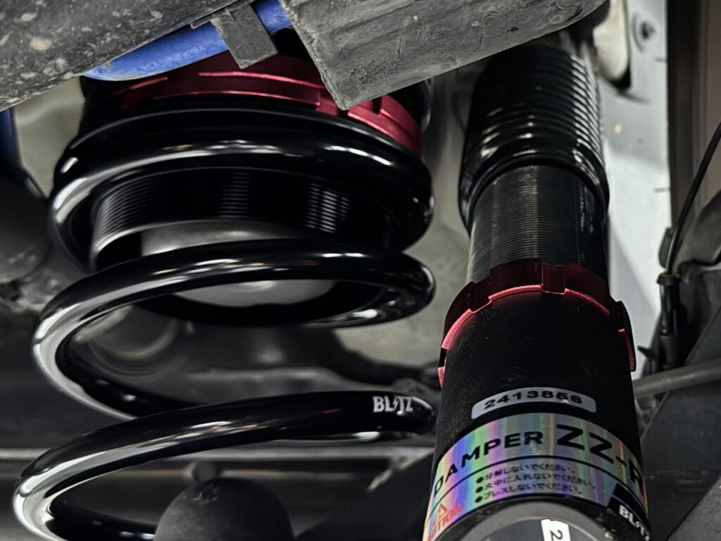 ダウンサス仕様から車高調に交換をご検討中で当店へご来店いただき、ZZ-Rが気になっているとの事でしたのでAPF595に装着しているので同乗試走して頂き敷地から出る段差の所での感じが滑らかであきらかに良かったとの事でご用命頂きました。