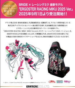 BRIDE×レーシングミク 最新モデル「ERGOSTER RACING MIKU 2025 Ver.」発売!