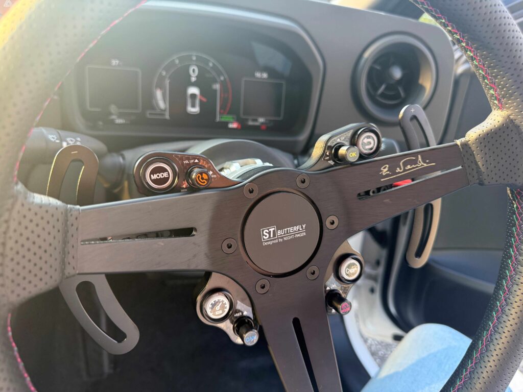快適性は無くしたくなく、さらにかっこよくしたいのでGR86デモカーでも使用したナイトページャー製のST butterflyを 新商品でGEN2も対応!! デモカーはDATなので同じくナイトページャーさんのパドルシフターも装着 これでDATもかっこよくステアリング交換ができます。GRカローラもOKみたいですよ。 ステアリングはHKSナルディ デープタイプですがパドル位置も調整可能 パドルの操作性も向上しました。 気になるオーナーさん 東雲で見れて触れますよ