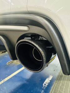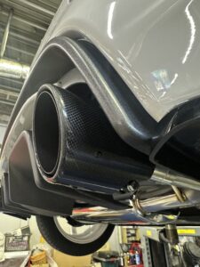 低~中回転でのトルク、中~高回転でのパワーを犠牲にすることなく、ジェントルなサウンドを奏でるリアマフラーです。テールエンドは大口径114mmのカーボン製で、リアフォルムをスポーティに演出。