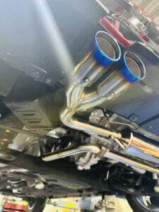 テール径 (φ) 70(SLASH)、出口方向 W(左)のブルーグラデーションが、リアビューをスポーティに演出。