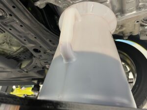 当店での交換はドレーンからフルードを抜き上からオイルを入れる交換方法になります。