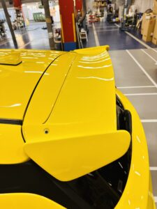 純正リアスポイラーに貼付け式でリアハッチ周りの整流効果を高め、FRP製を選択されボディー同色で一体感をアピールしてました。安心の車検対応品になります!
