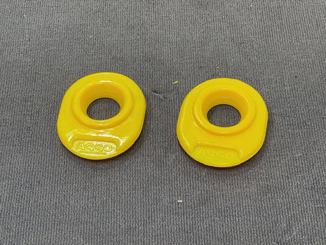 そしてフロントアッパーマウントの隙間にはASSPIDE トップマウントブッシュを一緒にとりつけました。隙間の形にフィットするデザインでトップマウントの密着度合を高めサスペンションの動きを良くしよりスムーズなフィーリングにしてくれます。