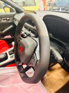 シビックTYPE Rに無限のステアリング【スポーツステアリングホイール】品番:78501‐XNRC‐K0S0‐BKを取り付け致しました。