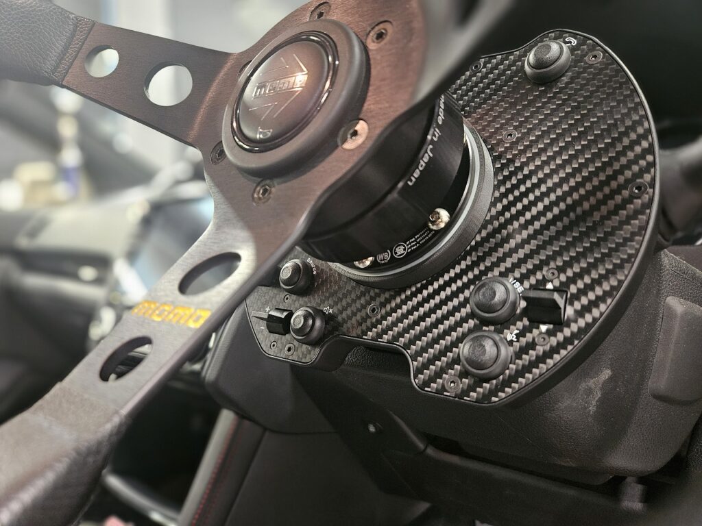 カーボン製のスイッチケースとボタン配置がレーシングカーのステアリングのような雰囲気でGOOD🎶✨️✨️