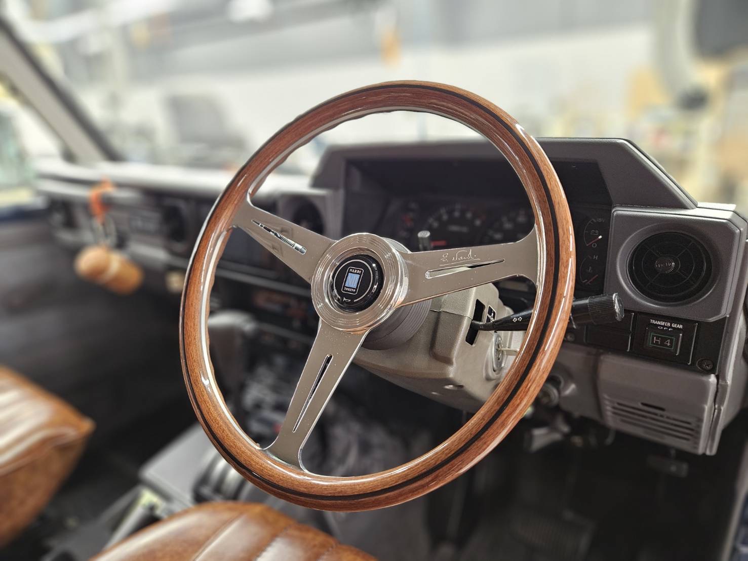 質実剛健な当時の70ランクルに、NARDIステアリングを取り付けさせて頂きました。