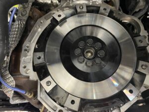 組付け作業ではミッションを脱着しますので同時にアールズ軽量フライホイールを装着!