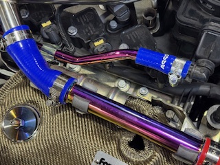 ASSOブリーザーパイプそして新製品のブローオフパイプにてカスタマイズです。今まではブローオフパイプはノーマルパーツの黒パイプでしたが綺麗なブリーザーパイプと一緒のカラーで出ました。
