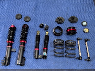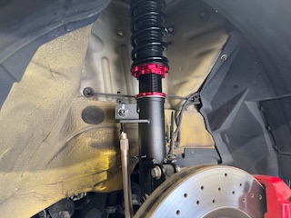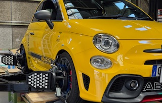ABARTH595にBLITZ車高調ZZ-R、APITオリジナルCORSOTipoリヤスプリング、フロントスタビリンク、リヤメンバーボルトの取付け作業を行いました。