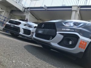 APITデモカーの新型レヴォーグ、VAB、33スイフトの3台を筑波2000サーキットのテスト走行でした。
