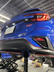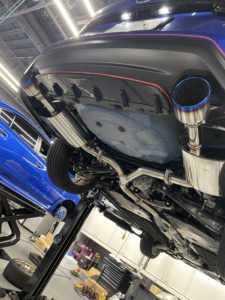 スーパーターボマフラー装着させて頂きました。純正比48%減の低排圧を実現し、ほのかなボクサーサウンド そして124φの大口径テールがカッコイイ