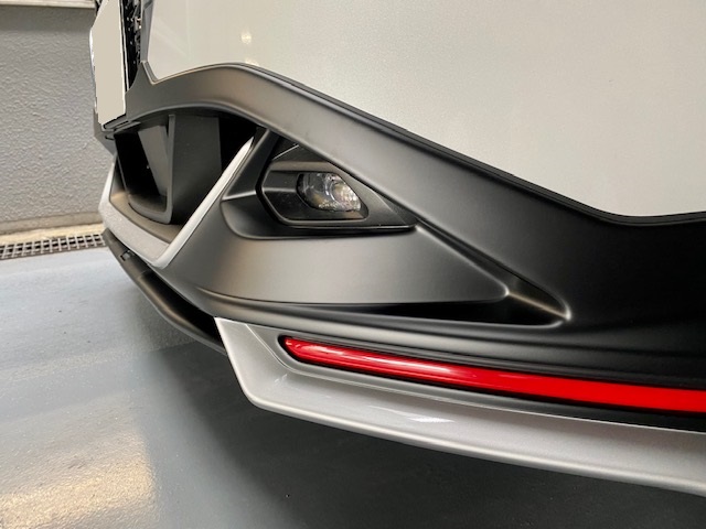 日産ディーラーでもお取扱いのあるBUSOU商品、ディーラーで取扱いしているだけあってクオリティー、取付のフィット感も良い商品です。通常社外エアロに採用されるFRPではなく、PPE樹脂(ポリフュニレンエーテル)を採用している為、耐熱性に高く、硬質で粘り強く、表面のうねりなども少ない仕上がりです。どんなボディカラーにも対応出来る塗装済みをご選択頂き、今回BUSOUフェア事前ご予約頂きお取付させて頂きました。