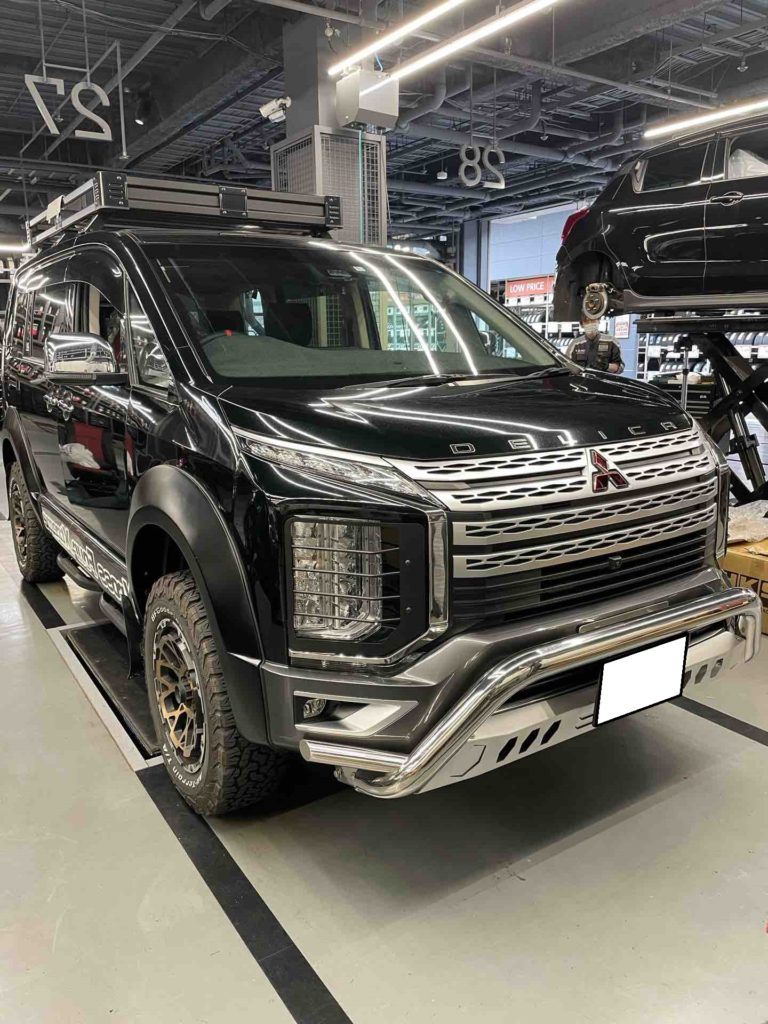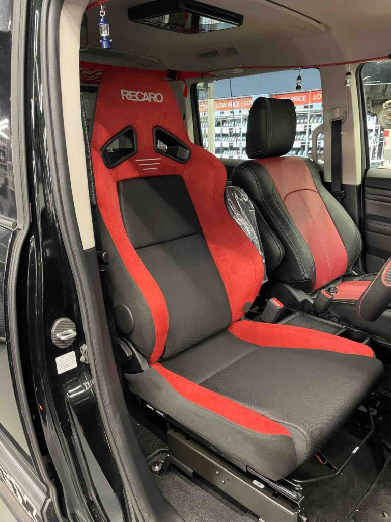 デリカD5にリクライニングシートSR-7Fをベースに、サイドサポートとヘッドレスト部に質感・ホールド性・耐久性が高い黒ウルトラスエードを採用したSR-7FGU100を装着しました。レカロ純正シートヒーターを標準装備しているので、真冬でも快適です。