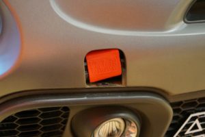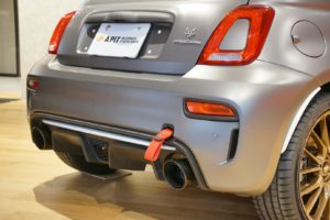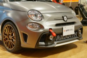 APIT京都四条デモカーABARTH595にラヴォーノ×COXトーイングストラップKITを取りつけました。