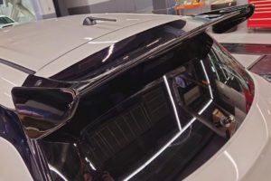 リアスポイラーはゲルコート仕上げのベースにブラックの塗装を施したうえで装着