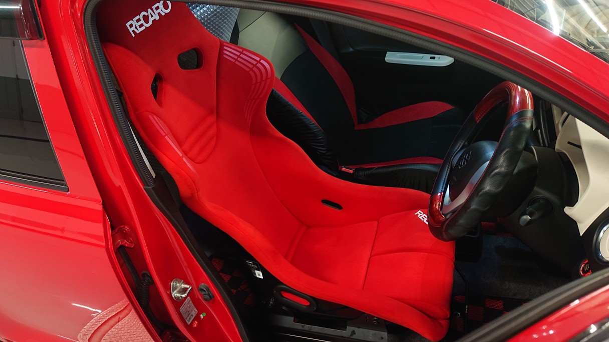 ショルダー幅540mmのRS-GSをセンターコンソールよりへオフセットセッティングした取付により、お客様も大変満足いただきました。ノーマル着座位置より下げたいこと、ホールド性を上げたいこともありRS-GSを装着。