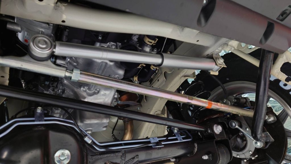 APIOのサスペンションキットを取付することにより、純正と比べ車高20mmアップし、なおかつ硬めのセッティングになりますのでしっかり感が増し乗り心地が変化します。