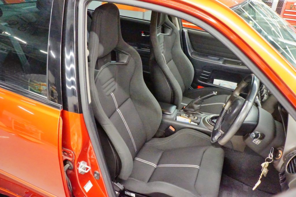 さて、そんなたくさんご来店いただいている最中でもRECAROへの取付が満載なA PIT 京都四条。本日は大阪府より2度目のご来店にてアルテッツァにSPORTSTERおよびCROSS SPORTSTERを注文いただいておりましたお客様への装着です。長年大切にしてきた愛車のシートがさすがにくたびれてきたのと同時にロングドライブでの腰の痛みにより今回の相談を受けさせていただきました。純正着座位置よりヘタリ分を加味し純正位置に近いポジションセッティングにてオーダー。